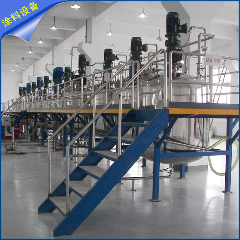 料成套設備的主要特點: 高剪切乳化分散,真空吸料,真空消泡,勞動強度低。 采用高剪切工藝,生產效率高。 采用計量器計量,配料準確,產品質量好。 釜內動態混合和釜外靜態混合的完善結合,保證顏料和高粘度樹脂的高度分散和充分混合。 采用半自動灌裝,從投料到出料道工序,操作簡單方便。 性能特點:具有操作方便、勞動強度低、生產效率高、產品質量好等許多優點,其中主要的優點是成品細度大幅度提高,大大提高了涂料的內在品質,從而確保了產品在市場上的競爭能力。此外,可以實現真空操作,使生產流程兼具環保功能。可根據用戶的不同要求,為您設計制作各型涂料設備。