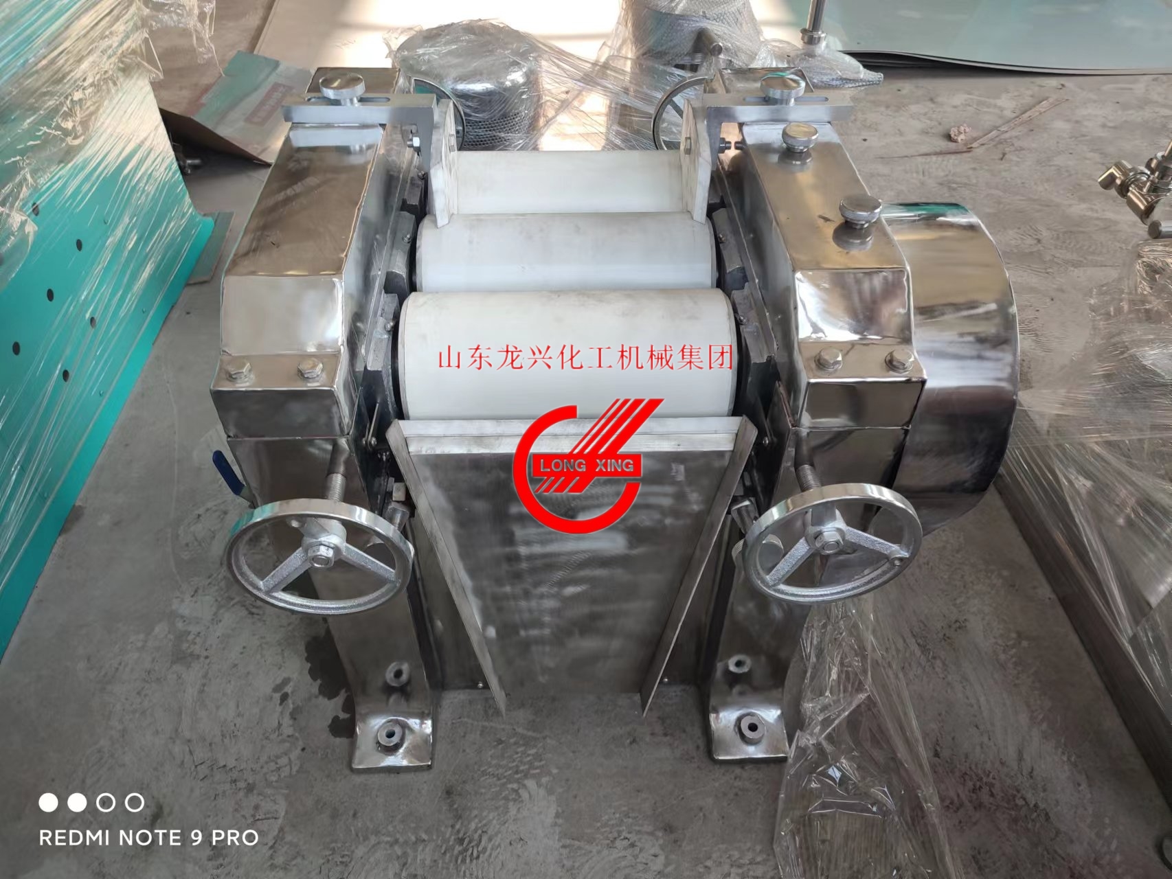 開機前準備工作主要是:把滾筒按順序松開,同時把下料刀也松開。再把檔尖微微的松開,將準備好已經清理干凈的接漿罐,再將冷卻水閥門打開。