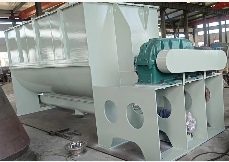 該機由混合槽、螺旋攪拌葉片和傳動部件等組合而成,螺旋葉片一般做成二層,外層螺旋將物料從兩側向中央匯集,內層螺旋將物料從中央向兩側分流,使物料在混合槽內形成對流混合,從而達到高均勻度混合。該設備為臥式混合機,出料高度可以根據要求定制。