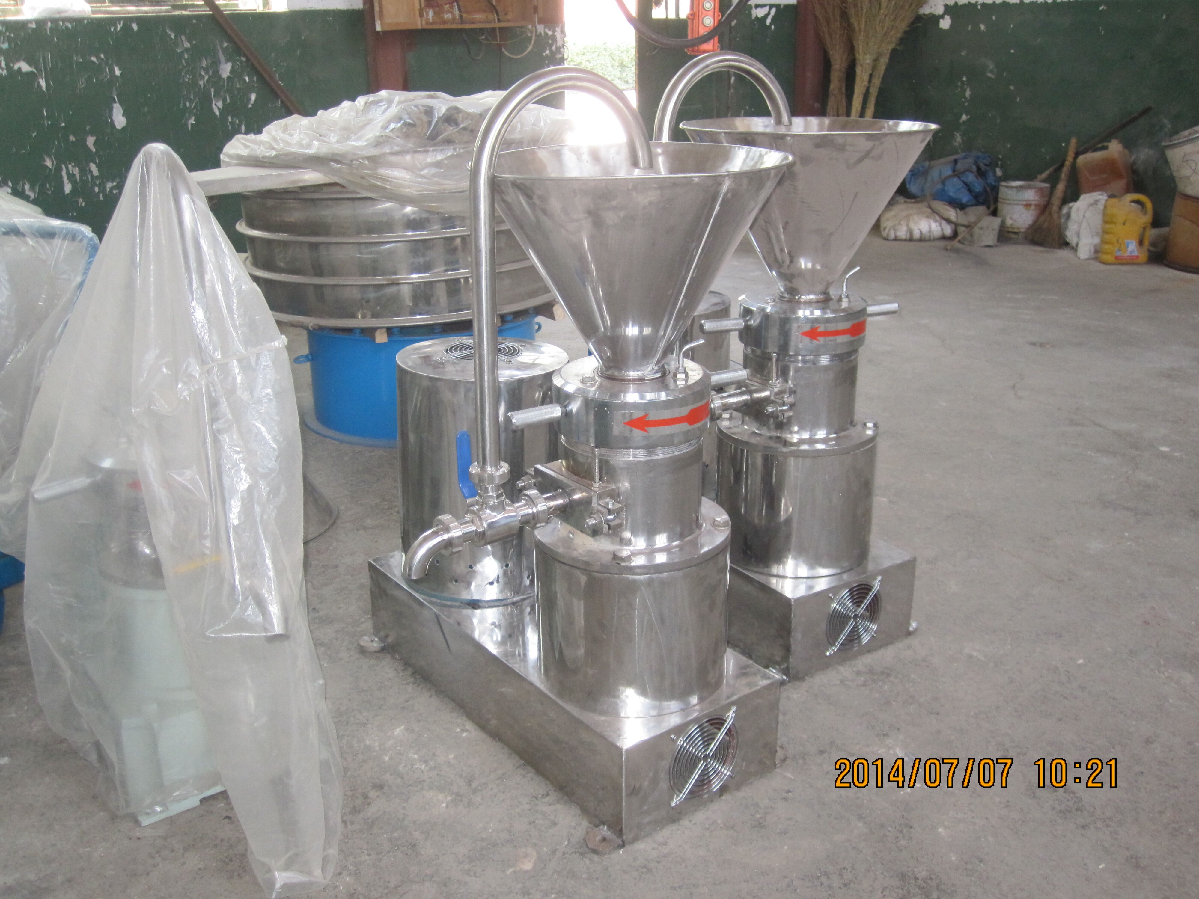 膠體磨為濕式物料微細加工機械。其原理是通過不同幾何形狀的轉子磨齒與定子磨齒在高速旋轉下的相對運動,使被加工物料在自重、離心力等復合的作用下,通過其可變環(huán)狀間隙時,受到強大的剪切力、摩擦力和高頻震動。達到分散、粉碎、乳化、均質、混合的目的。根據物料性質和加工要求的不同設計有多種磨齒。該機性能可靠并具有操作簡單、運轉平衡、噪音小、易維修、、用途廣、品種全等特點。