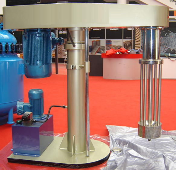 料,具有非常顯著的分散混合效果,通過液壓泵工作驅動液壓柱塞升降,帶動整個傳動機構和研磨裝置升降。