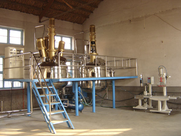 備采用液體計量器計量,高剪切乳化分散,真空吸料,真空消泡,半自動灌裝工藝流程,從投料到出成品一道工序。