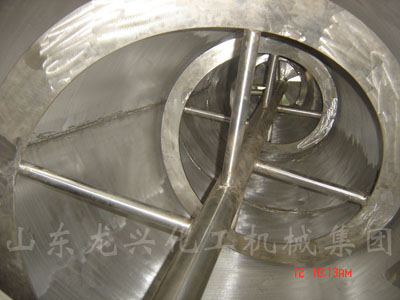 混合機的攪拌部件為兩條不對稱懸臂螺旋;長短各一,它們在繞自己的軸線轉動(自轉)的同時,還 環繞錐形容器的中心軸;借助轉臂的回轉在錐體壁面附近又作行星動(公轉);該設備通過螺旋的公、自轉使物料反復提升,在錐體內產生剪切、對流、擴散等復合運動,從而達到混合的目的。產品可根據要求設計外夾套(加熱、冷卻),噴霧器,廣泛應用于化工、醫藥、農藥、染料、建材等粉體與粉體的混合、反應。 該機根據工藝要求可在混合機筒體外增加夾套,通過向夾套內注入冷熱介質來實現對物料的冷卻或加熱:冷卻一般泵入工業用水,加熱可通入蒸汽或電加熱導熱油。